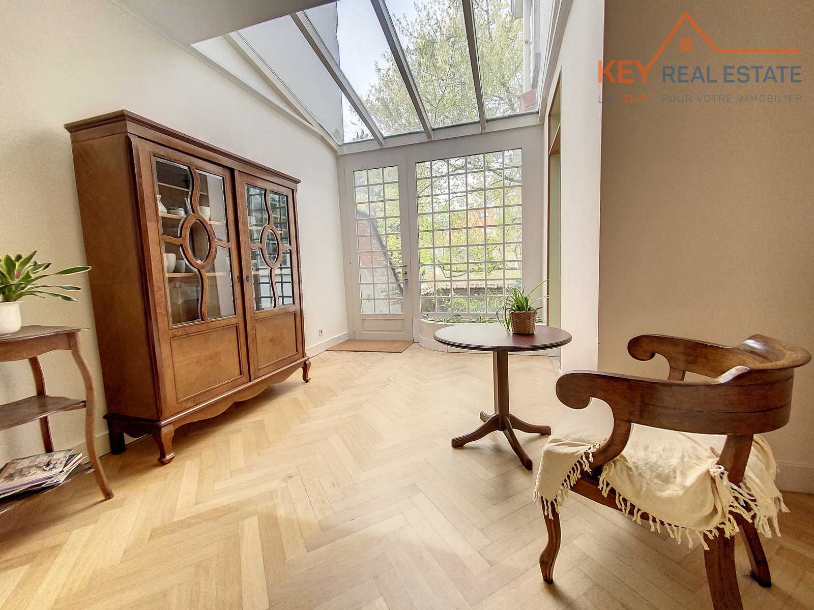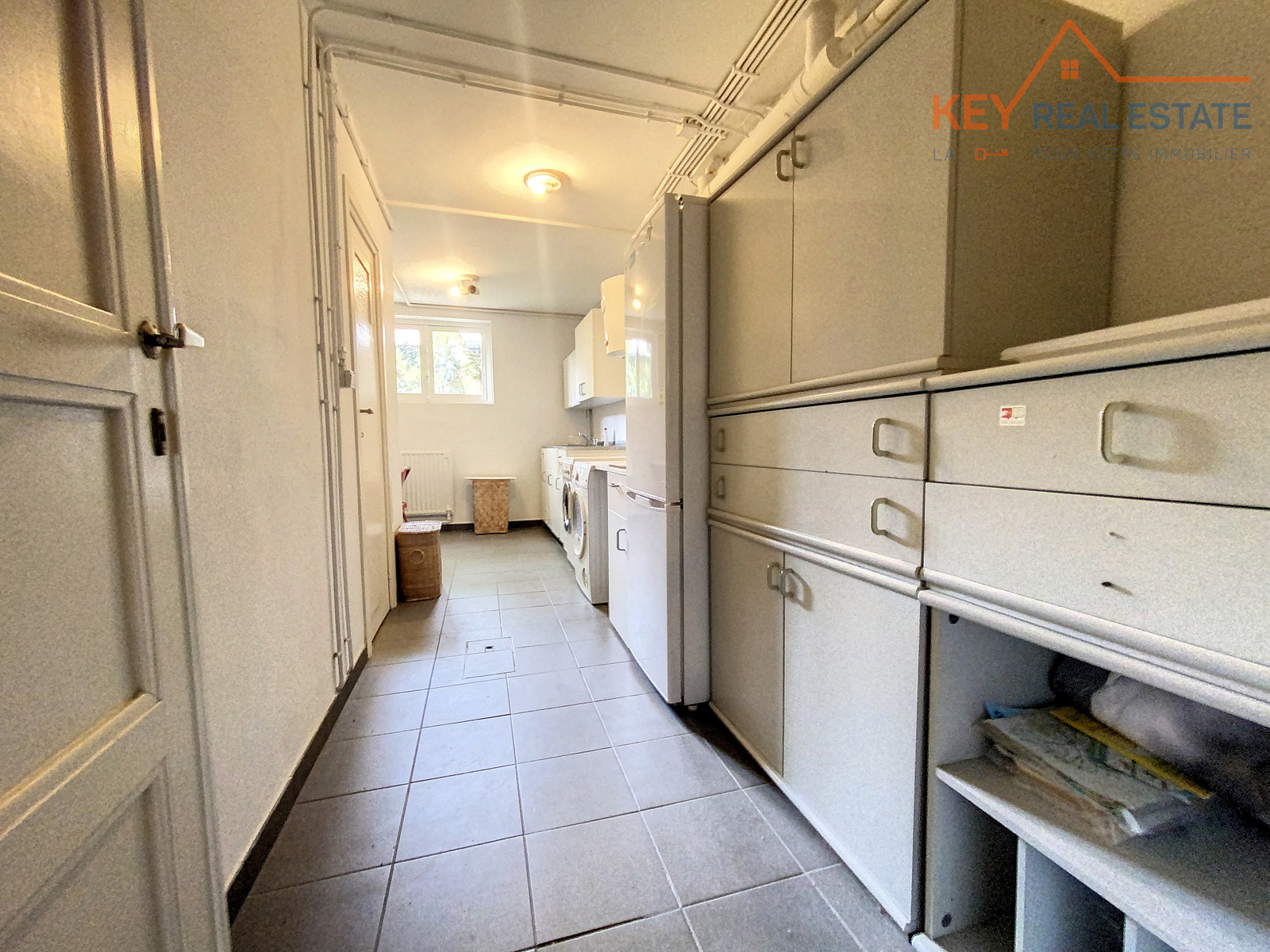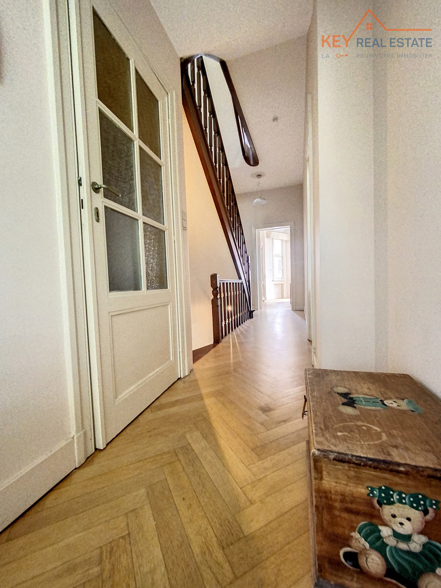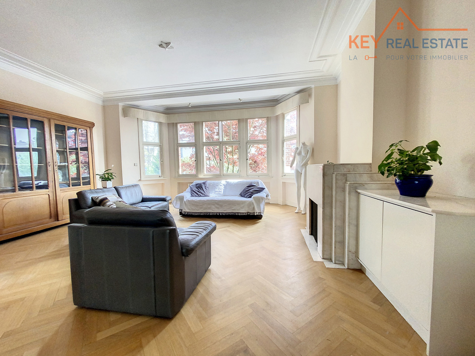 (Quartier Saint-Michel) Située dans un quartier chic et recherché à proximité du Square Montgomery – du Parc de Woluwe – des écoles (Collège Saint-Michel, Athénée Royale, et Ecole Européenne) – et des institutions européennes, à distance de marche des stations de métro Petillon et Thieffry, superbe maison de maître de style Art-Déco datant de 1931 et signée par l’architecte Fernand Lippens. Sise sur un terrain bien orienté (Sud Ouest) de +/-1a70ca, elle offre une superficie brute selon PEB de 279m². Elle se compose de vastes réceptions +/-55m² avec feu ouvert, cuisine équipée, 6 chambres (dont une Master avec salle de bains attenante), bureau au RDCH, 2 salles de douche et 2 salles de bains, buanderie, grandes caves, et garage. Cette superbe maison pourrait également accueillir une profession libérale au rez-de-chaussée et convient parfaitement bien pour une grande famille grâce, entre autre, à ses 3 chambres et salle de bains au 3ème étage. Agréable jardin et grande terrasse au dernier étage exposés Sud Ouest. La maison est très bien entretenue mais à remettre au goût du jour! Magnifiques prestations!! Informations et visites 7J/7: www.keyrealestate.be – 0477/656782.