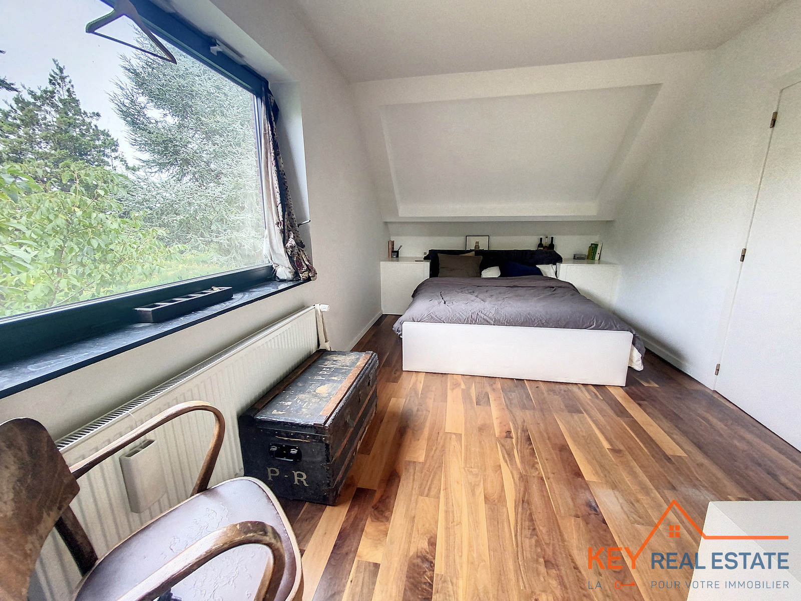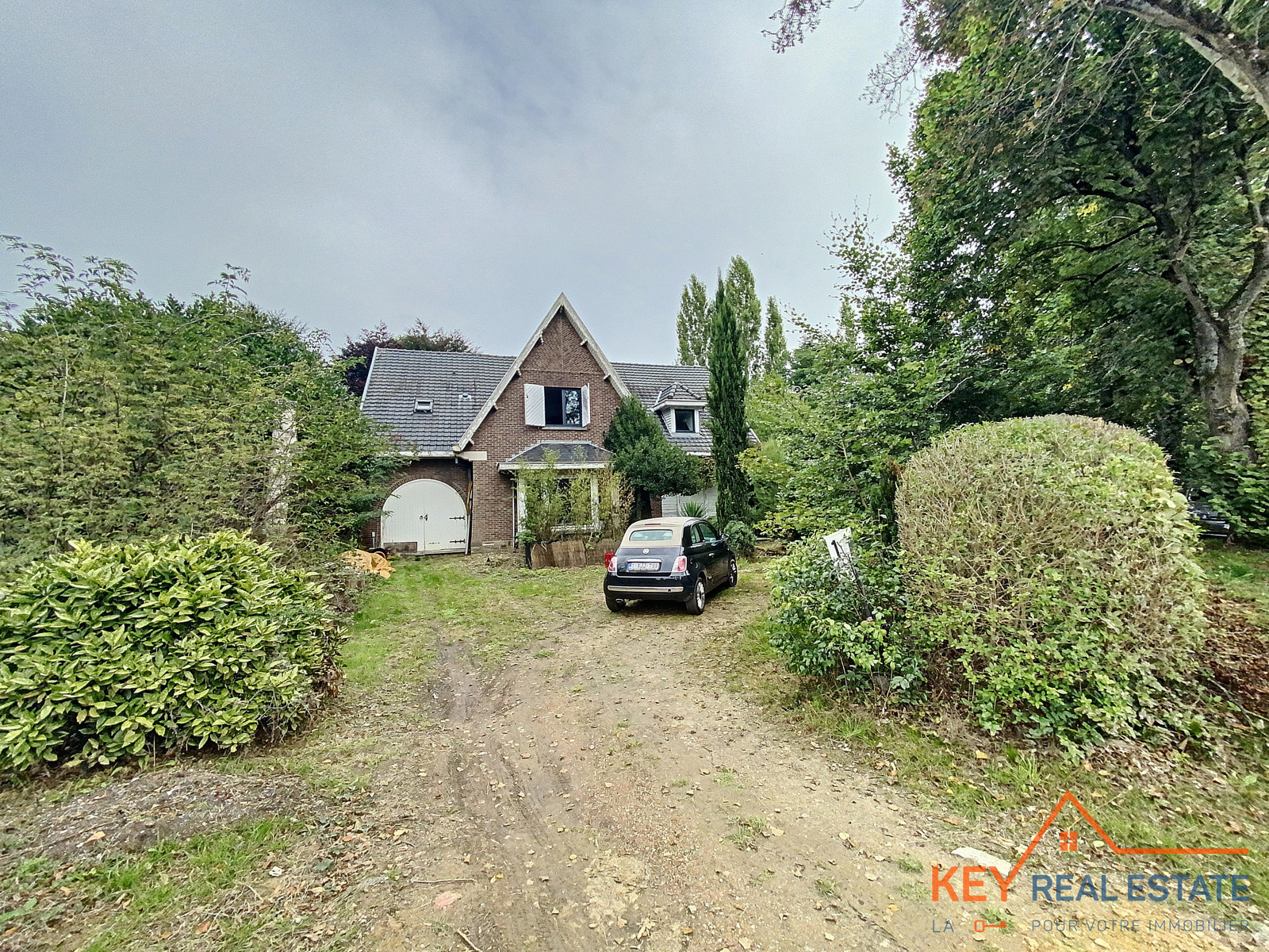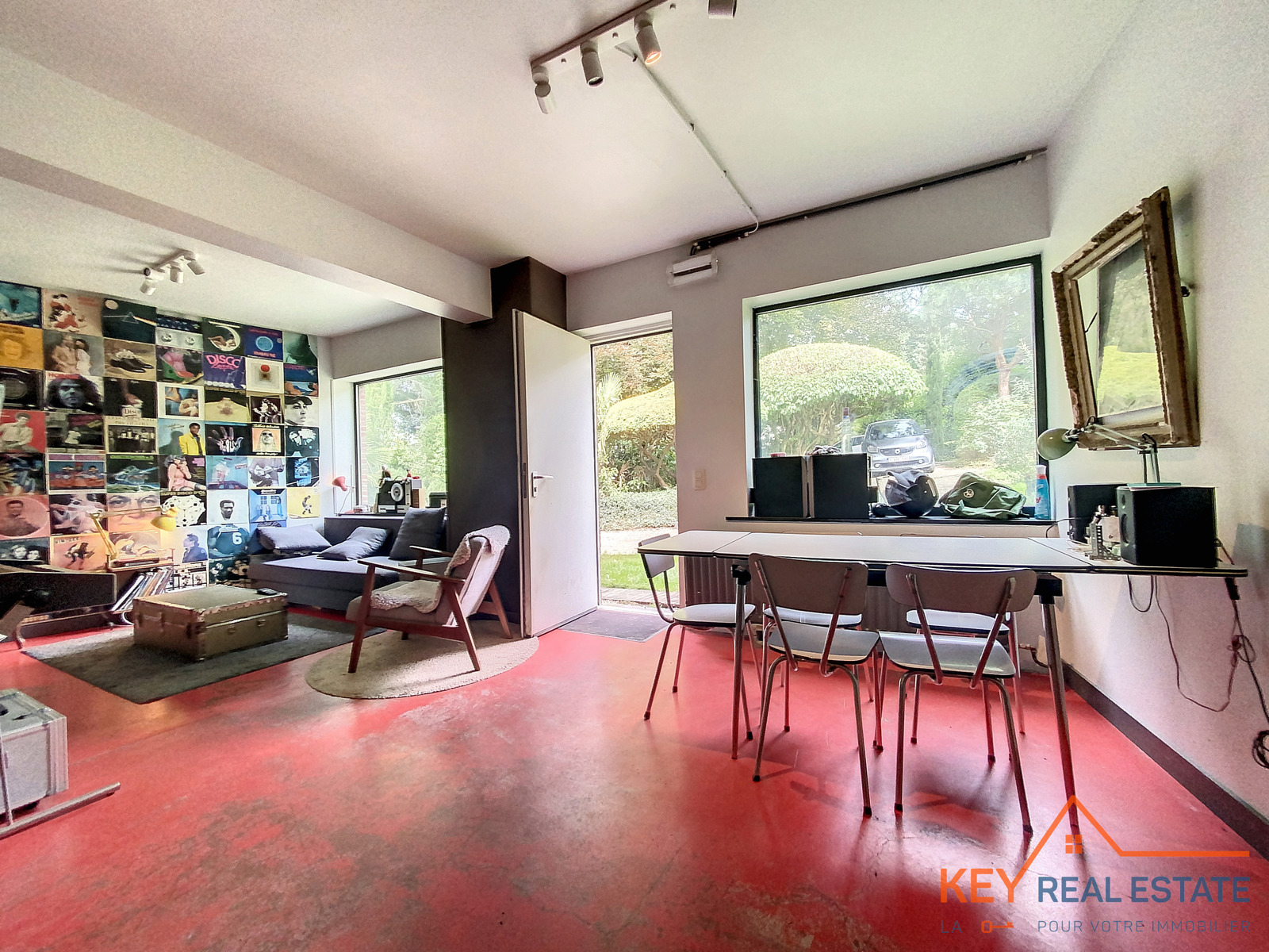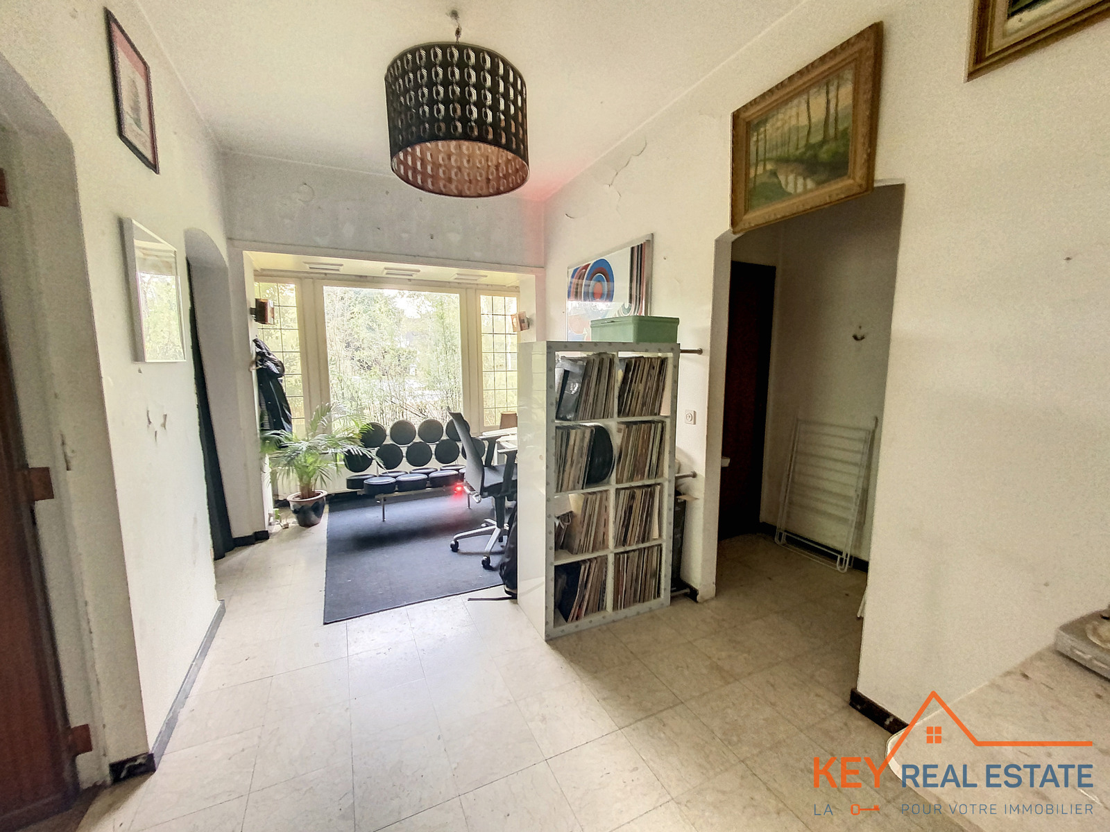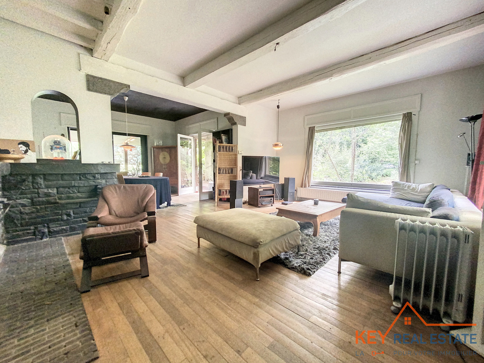 Rhode-Saint-Genèse (limite Waterloo) – Située dans le quartier prisé du Manoir, grande villa atypique bénéficiant d’une surface utile brute selon PEB de 465m² (+/-340m² habitables) implantée sur un magnifique terrain joliment arboré de 15a32ca. La villa s’étend sur 4 niveaux et se compose comme suit: au RDCH – hall d’entrée avec vestiaire et toilette visiteur, vaste séjour avec insert au bois et de grandes baies vitrées donnant accès aux terrasses sans vis-à-vis et avec une grande cheminée d’extérieur, cuisine à rénover, remise/office, et un garage une voiture. Le rez-de-jardin conviendra parfaitement bien pour l’exercice d’une profession libérale étant également accessible par une entrée séparée à l’arrière de la villa mais pourrait également convenir pour du logement. Cet espace d’environ 85m² (plus cave, wc et buanderie) se compose de 3 bureaux (ou 3CH) avec isolation phonique et traitement acoustique ainsi qu’une grande pièce commune de +/-33m² très conviviale côté jardin. Au 1er étage: hall de nuit avec accès vers le grenier aménagé, une suite parentale de +/-44m² (poss. de la scinder en 2) avec sa grande SDB attenante, 1CH de +/-15m² avec SDD en-suite, et 1CH de +/-19m² plus dressing. La grand SDB est aussi accessible par le hall de nuit. Au 2ème étage: grenier aménagé. Le bien dispose également d’un carport ainsi que de nombreuses places de PKG à l’avant et à l’arrière de la maison. Prévoir les modernisations habituelles : cuisine, menuiserie intérieure et extérieure, une petite partie des châssis, … Venez découvrir le beau potentiel qu’offre cette villa atypique!! Annonce et indications non contractuelles, sous réserve de modification. Informations et visites 7J/7: www.keyrealestate.be – 0477/656782.