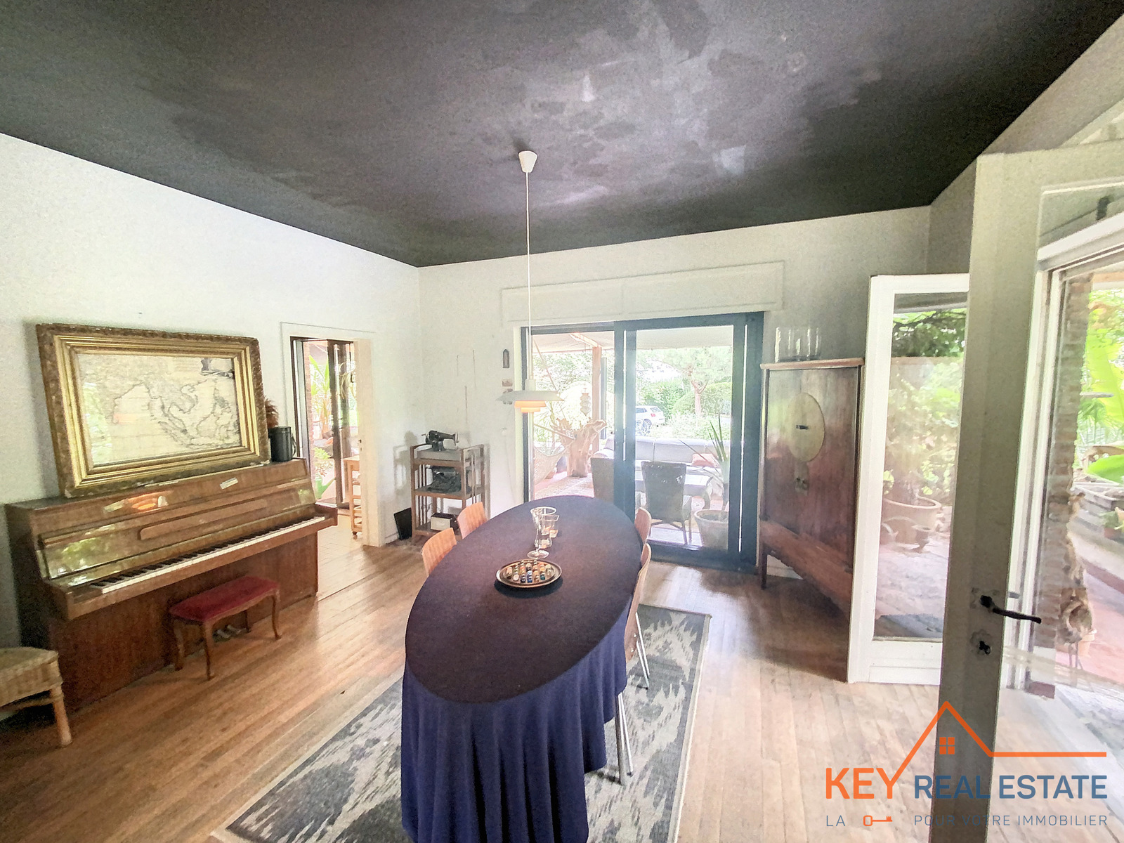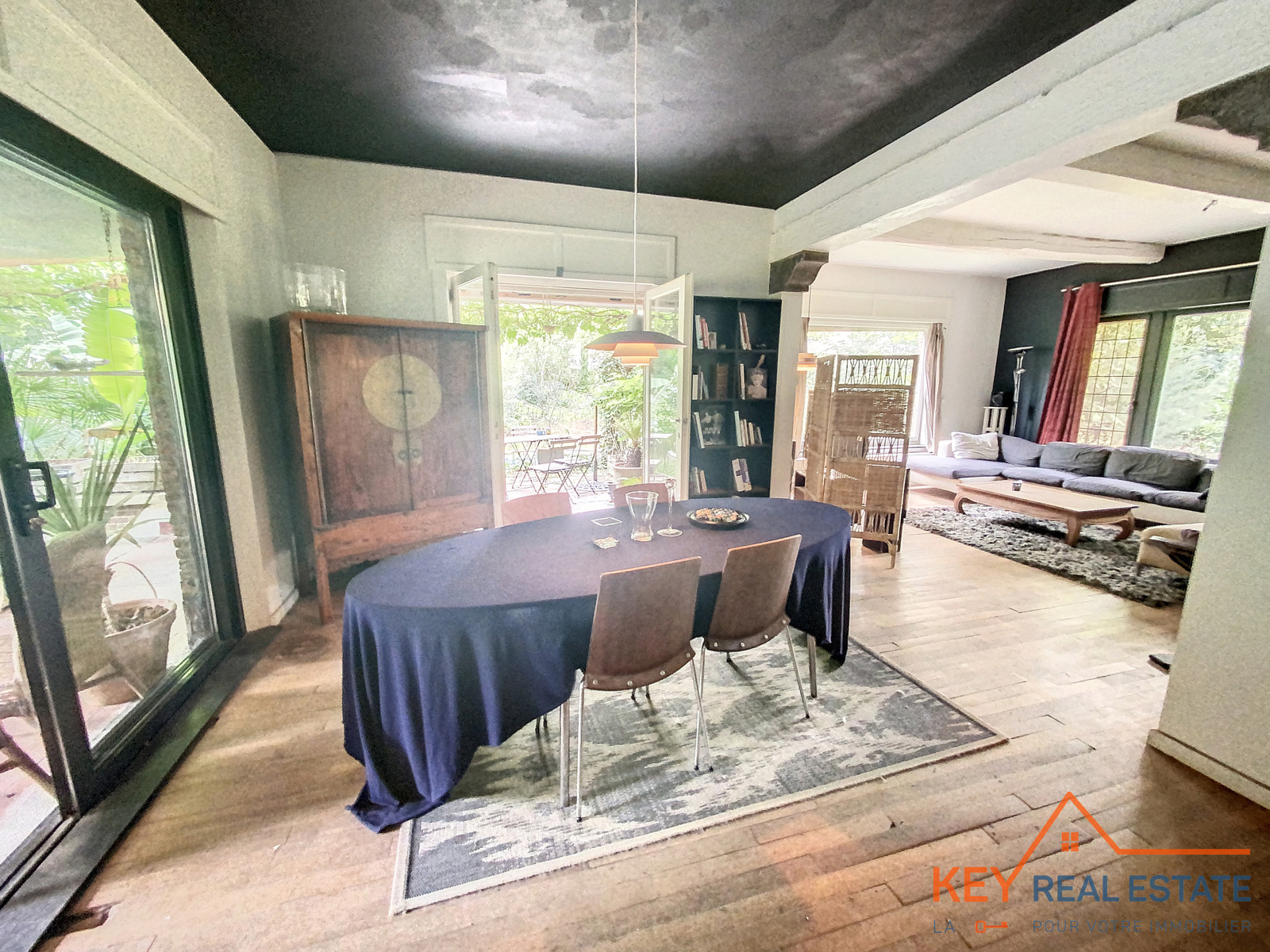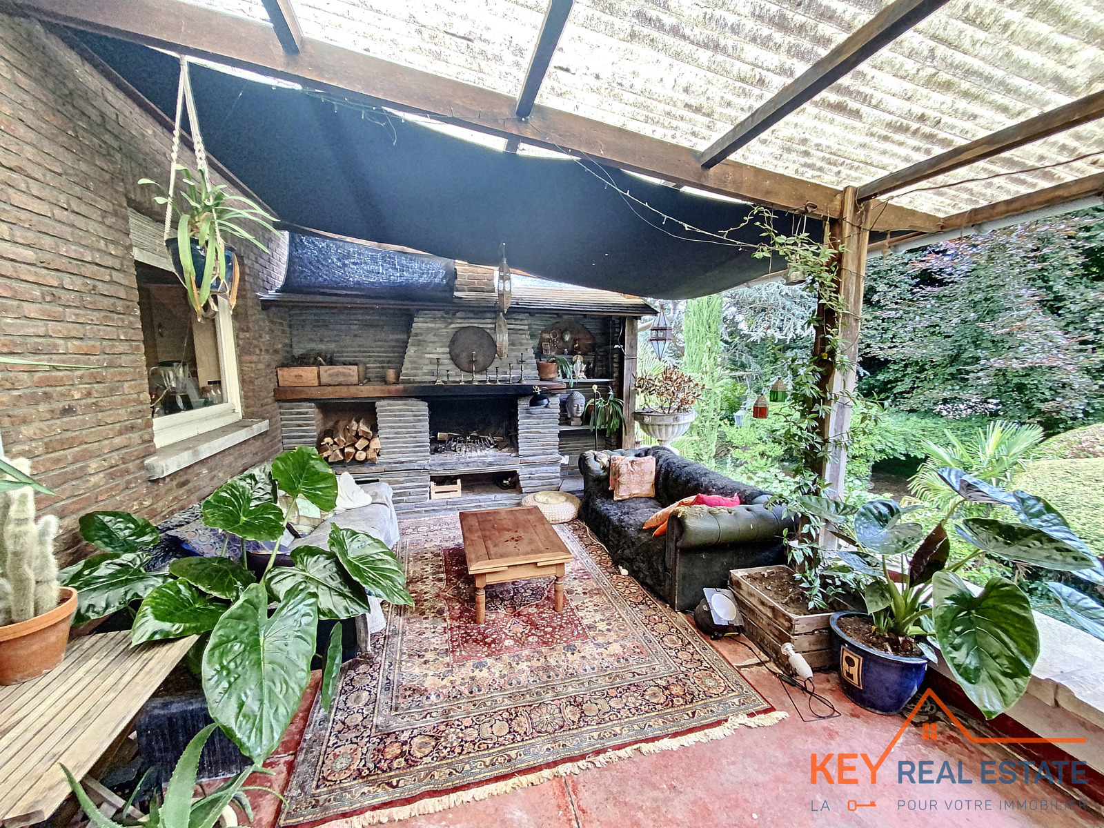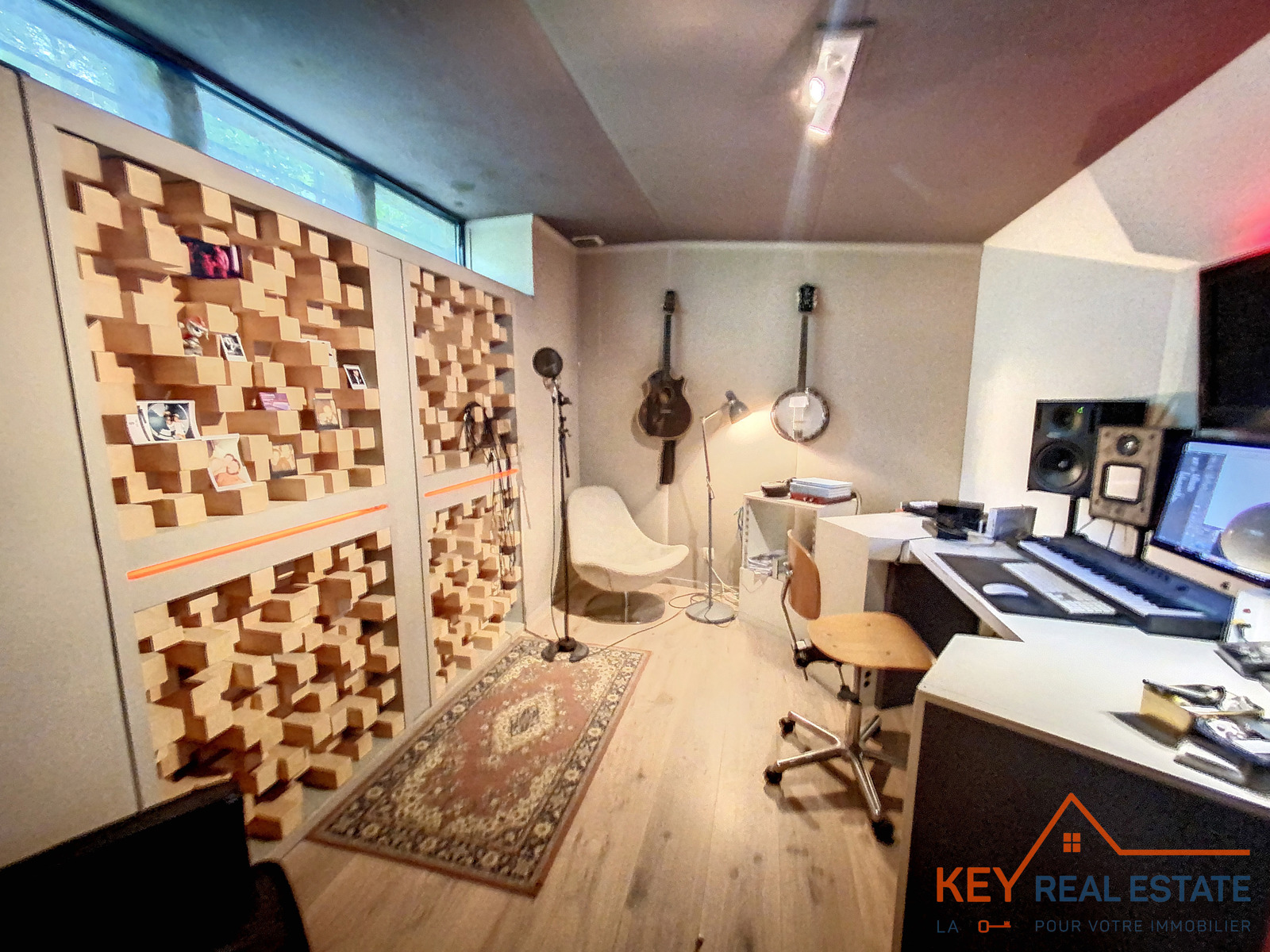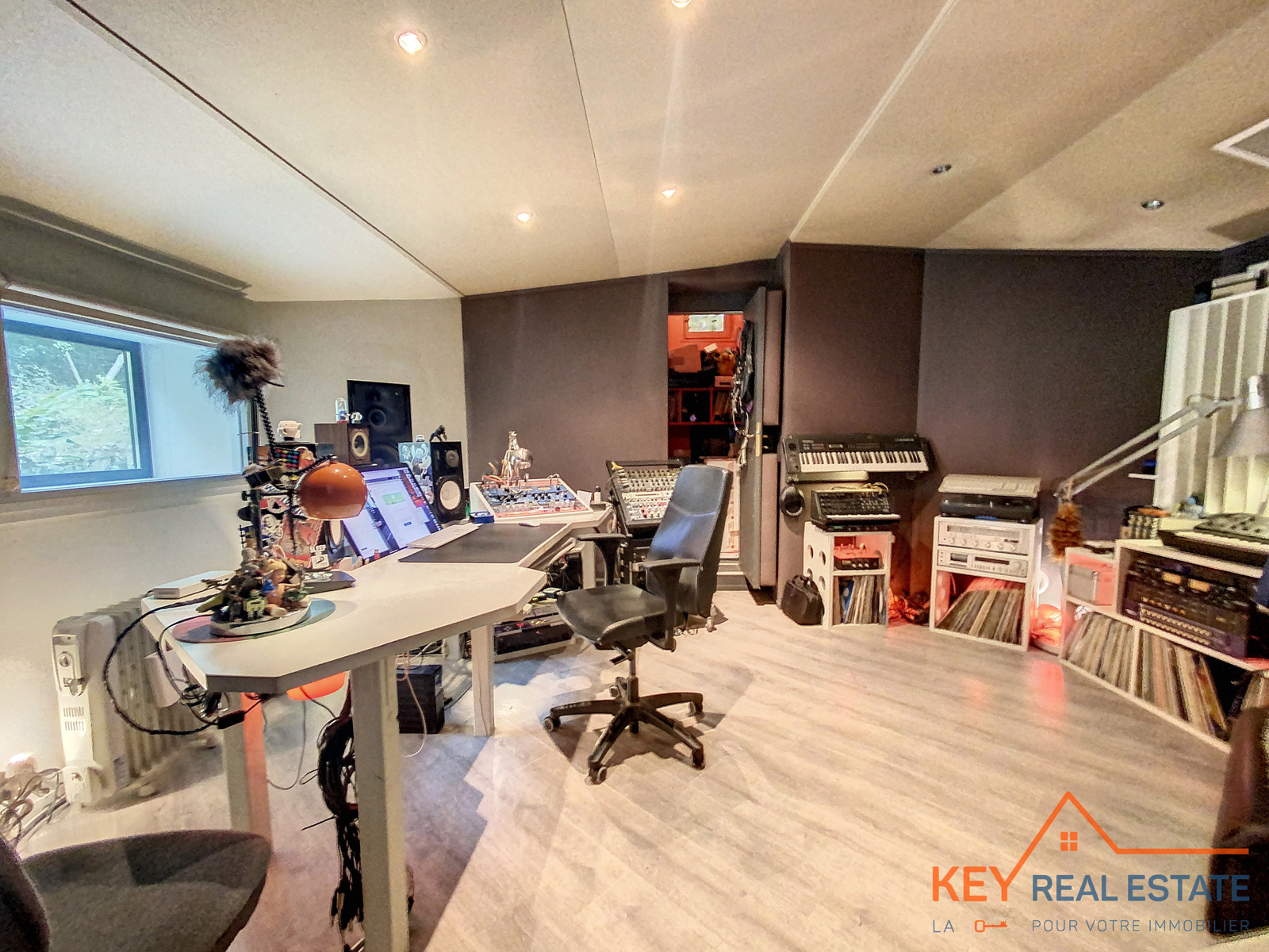 Rhode-Saint-Genèse (limite Waterloo) – Située dans le quartier prisé du Manoir, grande villa atypique bénéficiant d’une surface utile brute selon PEB de 465m² (+/-340m² habitables) implantée sur un magnifique terrain joliment arboré de 15a32ca. La villa s’étend sur 4 niveaux et se compose comme suit: au RDCH – hall d’entrée avec vestiaire et toilette visiteur, vaste séjour avec insert au bois et de grandes baies vitrées donnant accès aux terrasses sans vis-à-vis et avec une grande cheminée d’extérieur, cuisine à rénover, remise/office, et un garage une voiture. Le rez-de-jardin conviendra parfaitement bien pour l’exercice d’une profession libérale étant également accessible par une entrée séparée à l’arrière de la villa mais pourrait également convenir pour du logement. Cet espace d’environ 85m² (plus cave, wc et buanderie) se compose de 3 bureaux (ou 3CH) avec isolation phonique et traitement acoustique ainsi qu’une grande pièce commune de +/-33m² très conviviale côté jardin. Au 1er étage: hall de nuit avec accès vers le grenier aménagé, une suite parentale de +/-44m² (poss. de la scinder en 2) avec sa grande SDB attenante, 1CH de +/-15m² avec SDD en-suite, et 1CH de +/-19m² plus dressing. La grand SDB est aussi accessible par le hall de nuit. Au 2ème étage: grenier aménagé. Le bien dispose également d’un carport ainsi que de nombreuses places de PKG à l’avant et à l’arrière de la maison. Prévoir les modernisations habituelles : cuisine, menuiserie intérieure et extérieure, une petite partie des châssis, … Venez découvrir le beau potentiel qu’offre cette villa atypique!! Annonce et indications non contractuelles, sous réserve de modification. Informations et visites 7J/7: www.keyrealestate.be – 0477/656782.