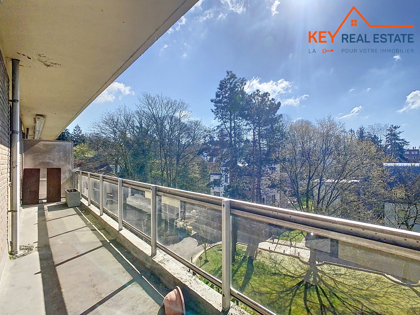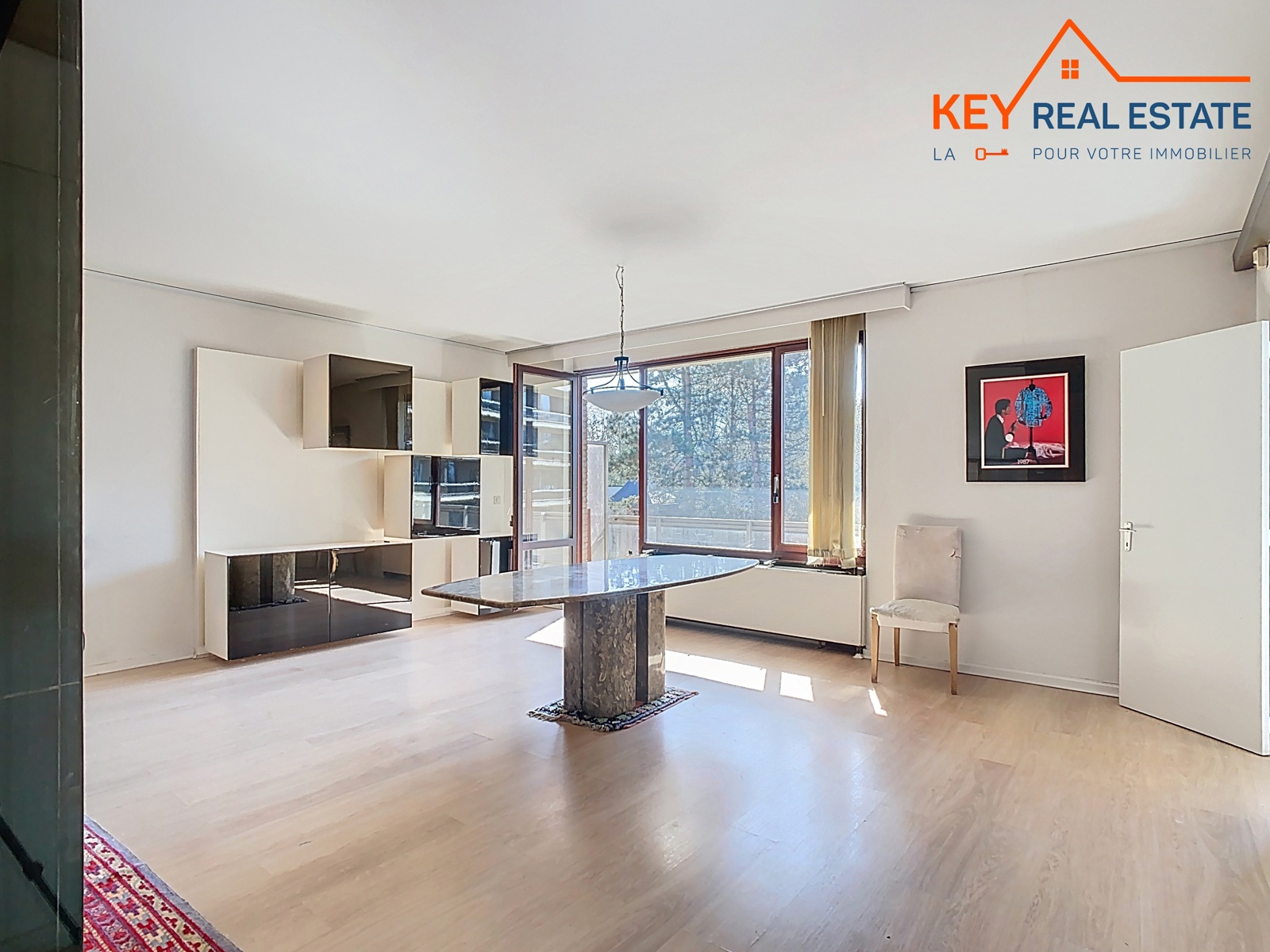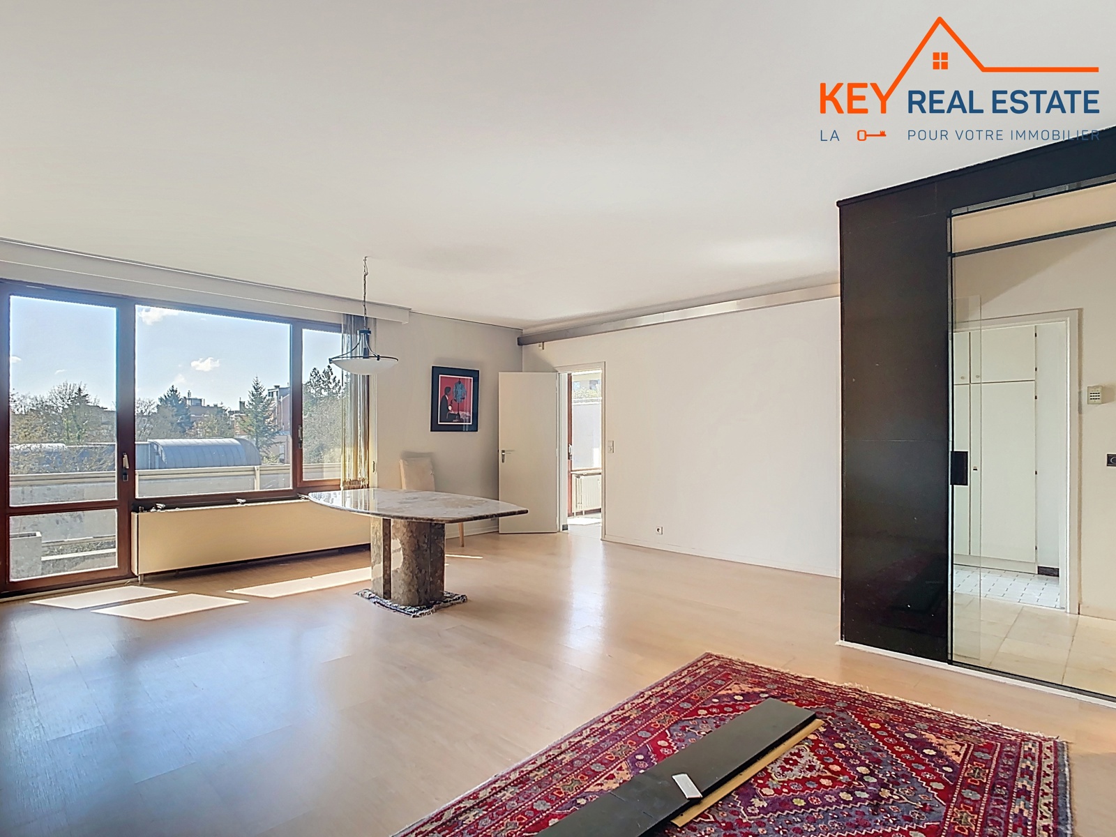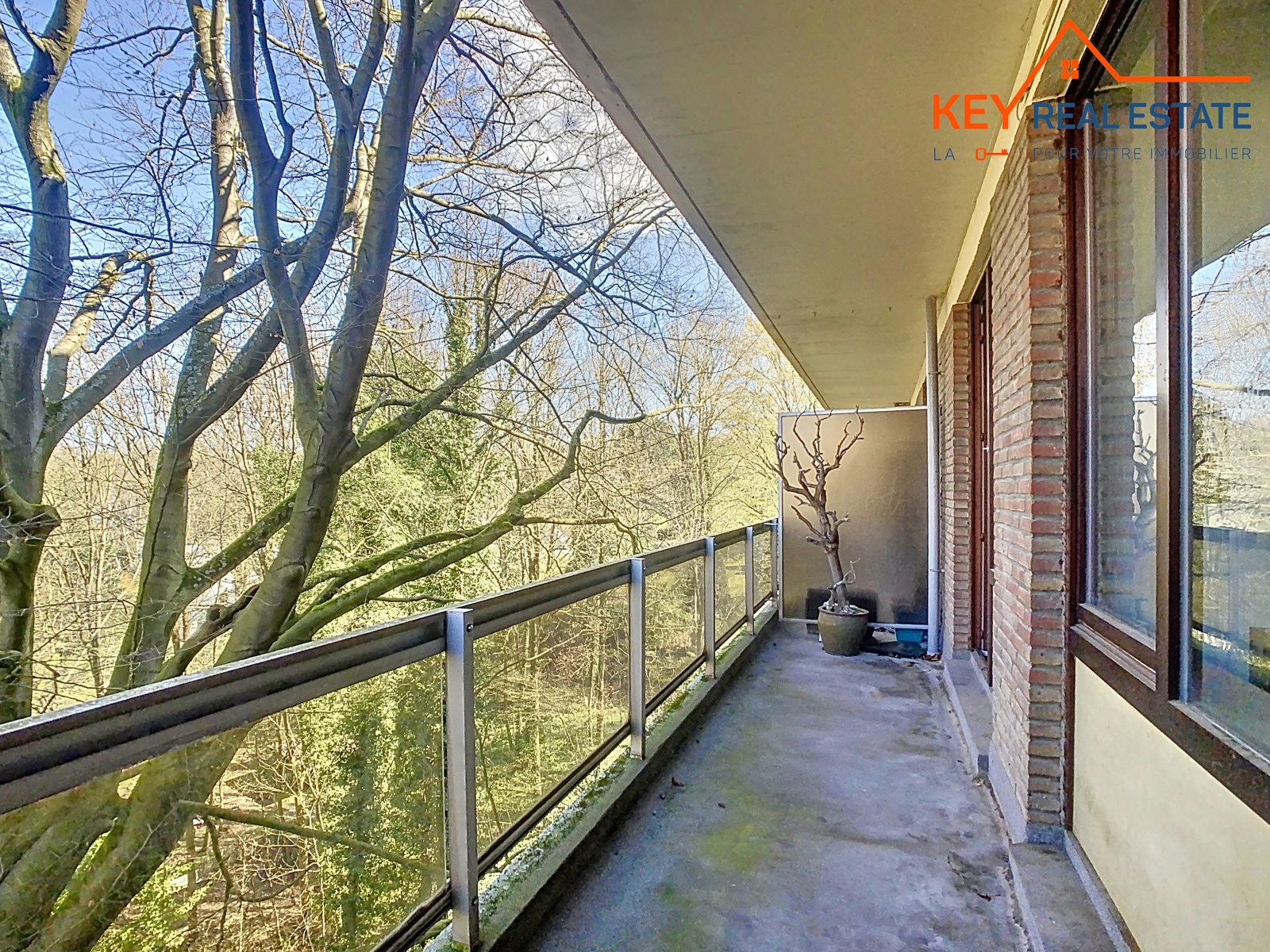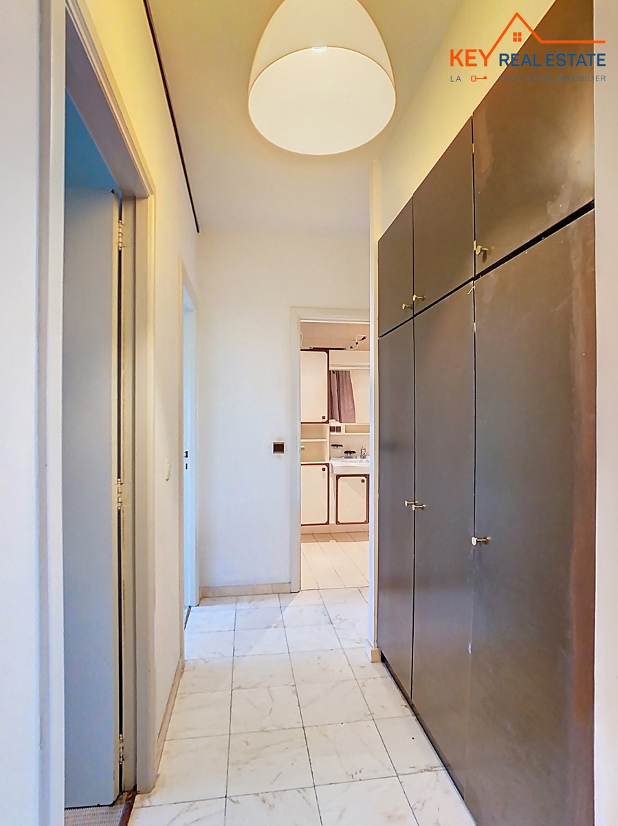 *** SOUS OFFRE – VISITES SUSPENDUES *** Uccle – idéalement situé en plein coeur du quartier Fort-Jaco dans une drève très calme et verdoyante, à 100m de toutes facilités (tous types de commerces, transports, etc…) et à +/-500m de la Forêt de Soignes et du Bois de la Cambre, Key Real Estate a le plaisir de vous présenter, en exclusivité, cet agréable appartement traversant et lumineux de 114m² (selon PEB). Il se compose d’un vaste hall d’entrée très accueillant (marbre) avec vestiaire et wc visiteurs, lumineux séjour de +/-38m² avec feu ouvert décoratif donnant accès à une belle terrasse de +/- 13m² exposée plein SUD avec vue verdoyante et dégagée, grande cuisine et arrière cuisine (possibilité de buanderie séparée) à rénover offrant aussi un accès direct à la terrasse plein SUD, hall de nuit avec autres placards encastrés, deux grandes chambres (tapis à remplacer) de +/- 12m² et 15m² avec vue ou accès direct à une terrasse arrière de +/- 9m² en pleine nature et au calme absolu, grande salle de bains complète avec deux éviers. Divers: porte d’entrée blindée, DV en bois, ascenseur, concierge, nombreux placards de rangement, cave. Garage/box en option moyennant un supplément de 35.000EUR. Libre d’occupation. Electricité non conforme. PEB: C-. Une adresse d’exception, à découvrir en exclusivité 7J/7 avec Cédric – info@keyrealestate.be – www.keyrealestate.be – 0477/656782.