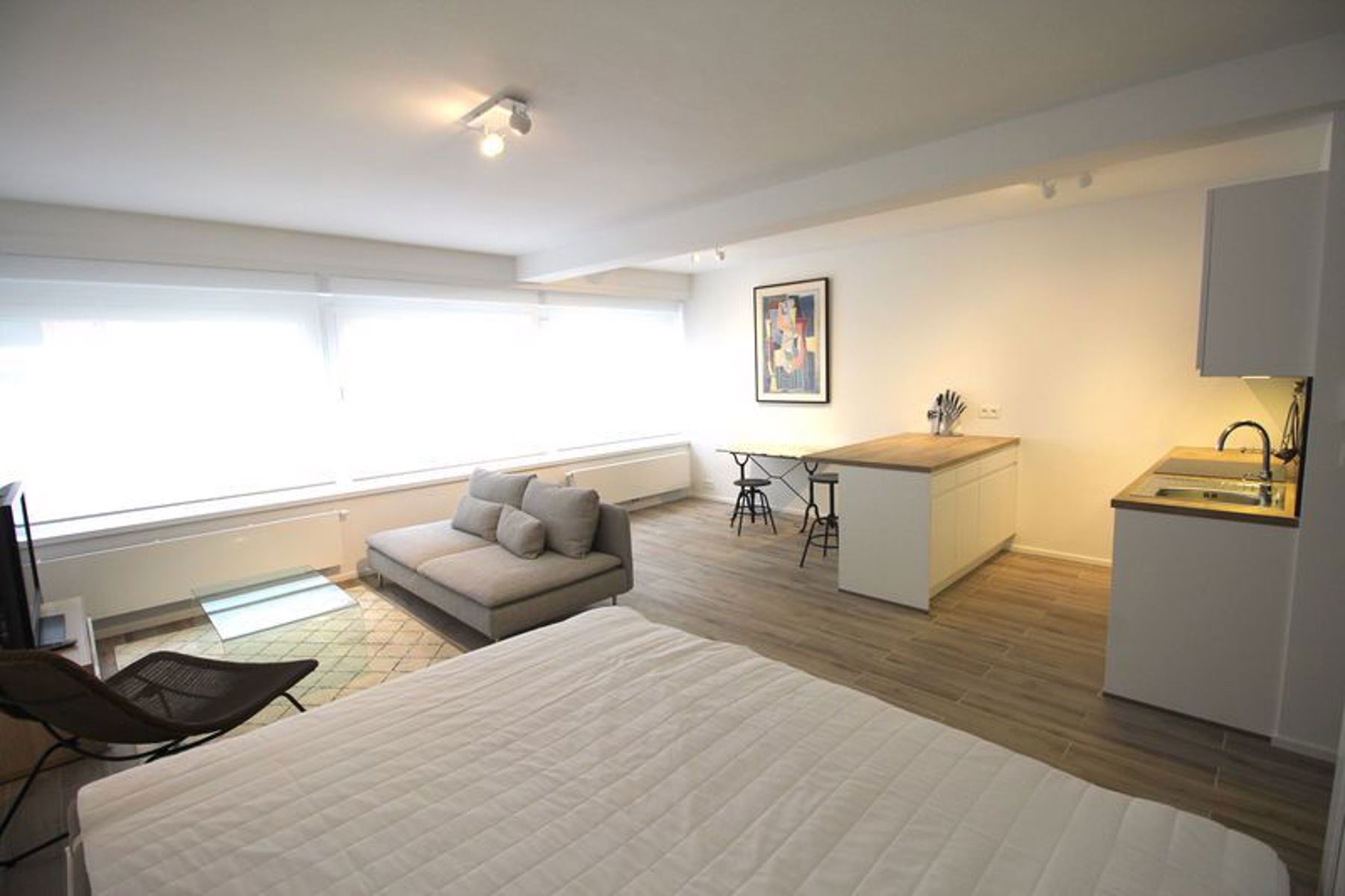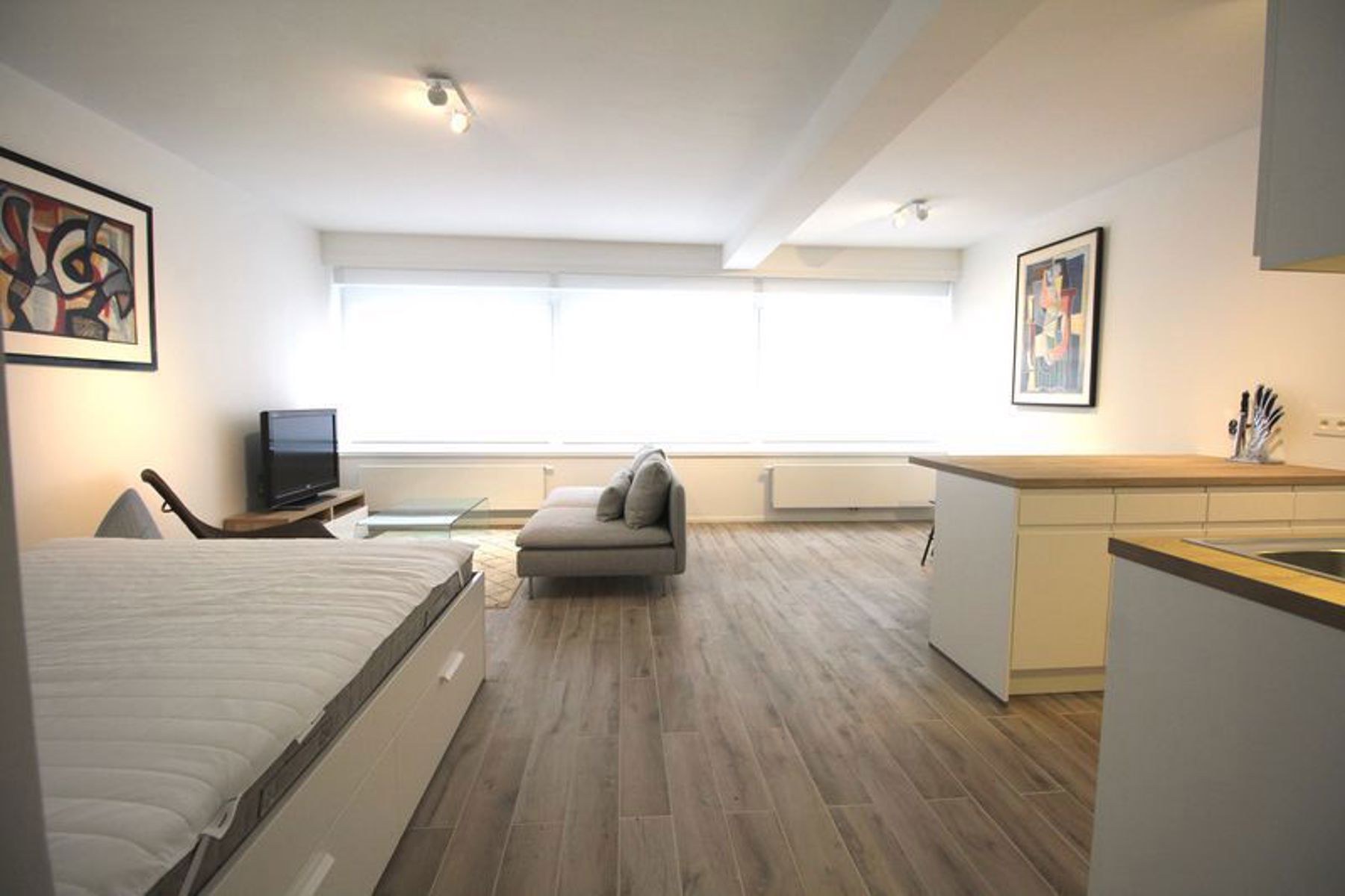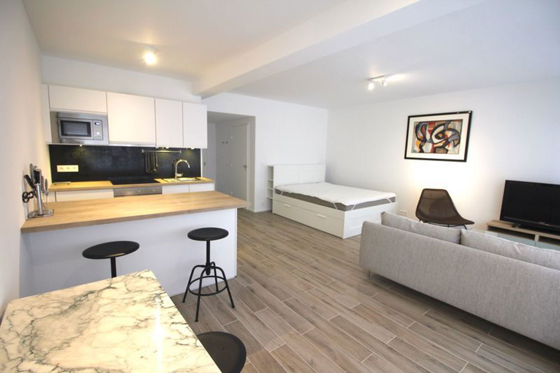 *** OFFRE FERME EN COURS – VISITES SUSPENDUES *** Idéalement situé dans le Haut de St-Gilles (limite Ixelles) à proximité de la Place Stéphanie/av. Louise, Ma Campagne et de la place du Châtelain, magnifique/lumineux studio vendu meublé de +/- 47m² (selon PEB) entièrement transformé et REMIS A NEUF en 2020 !! Nouveau châssis DV en aluminium, porte blindée, nouveau revêtement de sol, salle de douche haut de gamme (robinetterie et colonne de douche HANSGROHE) avec wc suspendu (système GEBERIT) et emplacement pour une machine à laver, magnifique cuisine américaine super équipée (table de cuisson-four multifonctions et micro-ondes encastrés SMEG, hotte NOVY, frigo-congel BOSCH), et un grand vestiaire/dressing séparé. Cave au sous-sol. Actuellement loué (loyer indexé 991,54EUR/mois comprenant une provision sur charge) et l’appartement sera libre d’occupation fin décembre 2025. Faibles charges communes! PEB: C (livré en 2020 – changement de chaudière en 2025 plus réfection des toitures terrasses et isolation des façades en 2025 également donc le résultat PEB devrait être encore meilleur aujourd’hui), installation électrique conforme jusqu’en 2045! Annonce non contractuelle, sous réserve de modification. Info et visites 7J/7 – cla@keyrealestate.be
